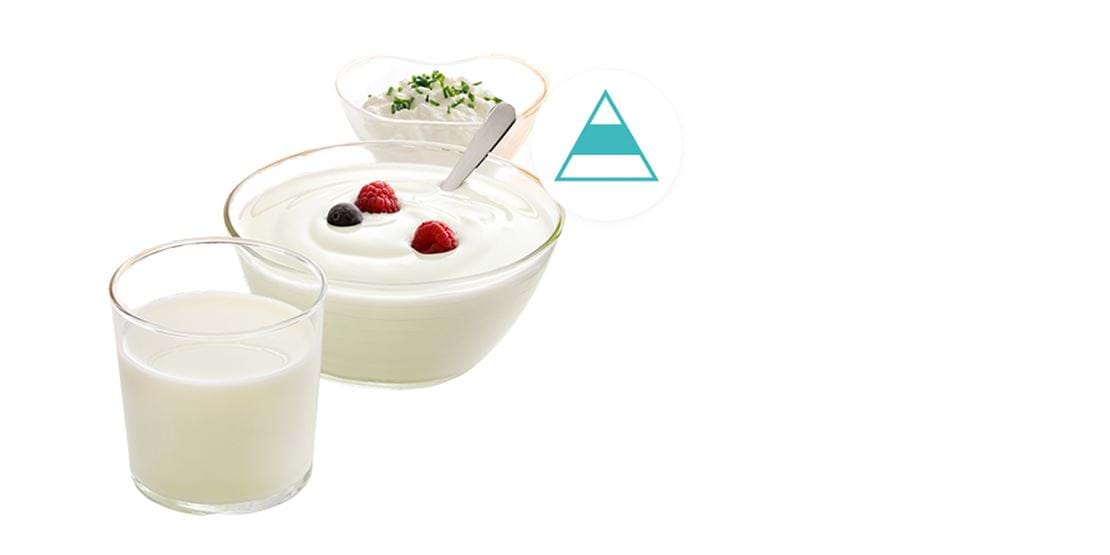 Mælkeprodukter som mælk, yoghurt og hytteost ligger i midten af Madpyramiden. Kig efter Nøglehullet, når du køber ind. Så er du sikker på, at mælkeproduktet har et lavt indhold af fedt og sukker.